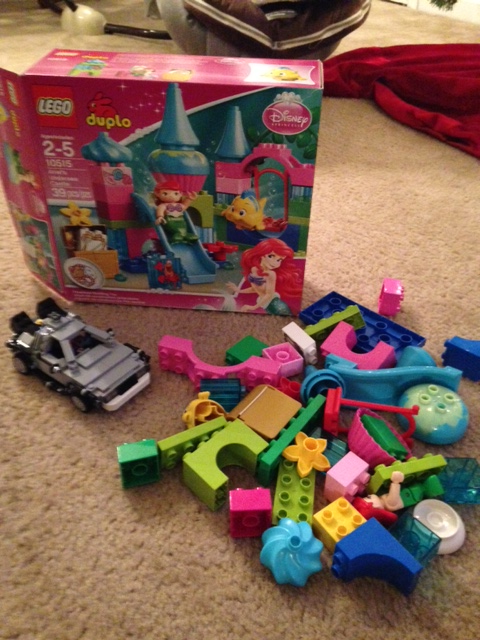 One of the greatest things that Sophia has gotten into this winter is LEGO. AND I AM SO EXCITED I CAN’T EVEN TELL YOU!! I have a bucket of old LEGOs in the basement that she’s started playing with. We bought her her very first set at the LEGO store (and I may have gotten the Back to the Future DeLorean for myself…) and she loves them. Granted, she tosses them around when I’m trying to put mine together or she’s putting her own together.