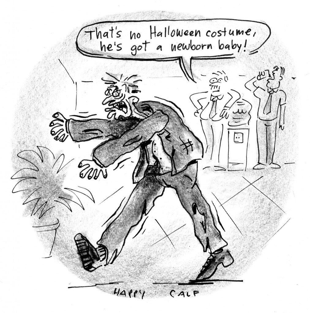 Maddie is teething. So, she’s been waking up screaming and crying in the middle of the night. So, it’s up into Walker mode, I go. Arms out just so, walking with a slight limp to wake my legs up. Whether I need to adjust how she’s sleeping, give her some Tylenol, put Orajel on her gums, feed her, or even rock her back to sleep, I’m doing it in all-out Zombie mode. I barely remember what it was I did when I wake up in the morning.
