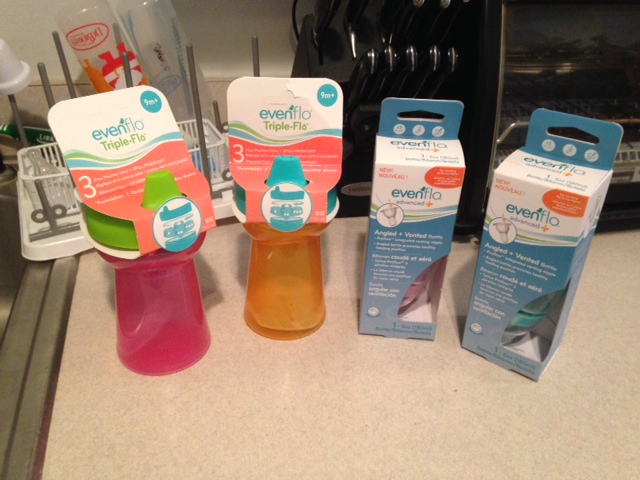 I was sent a couple of products from the fine folks at evenflo Feeding to try out with the girls. I took them for a test-drive, so to speak. The first of the products we tested out was the Advanced+ baby bottle. The other was their new Triple-Flo tumbler. I’ll start with the Advanced+ bottle.