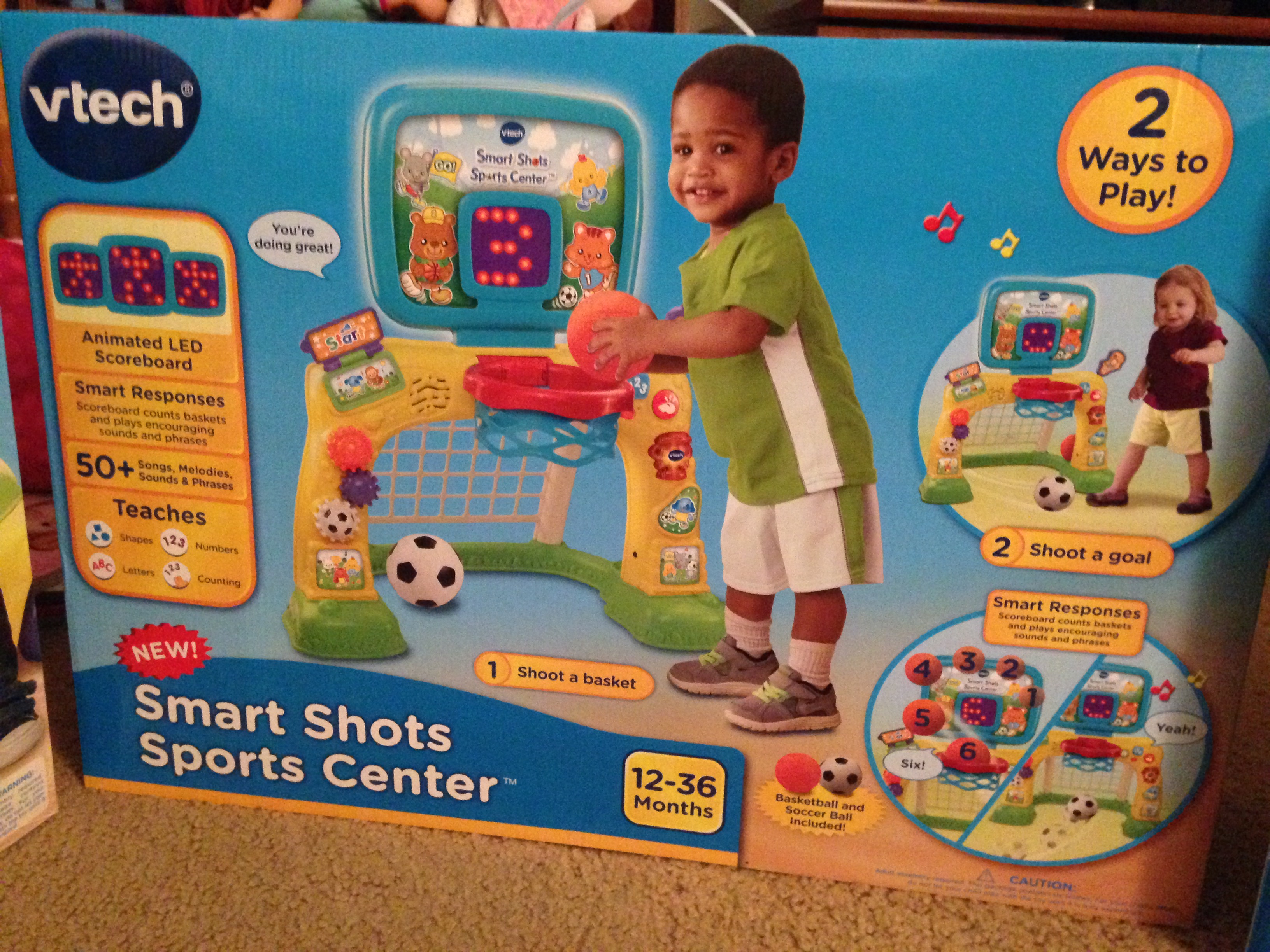 · Parents can cheer on their little sports stars with the Smart Shots Sports Center. This electronic sports center features a soccer goal and basketball hoop for a fun 2-in-1 experience.